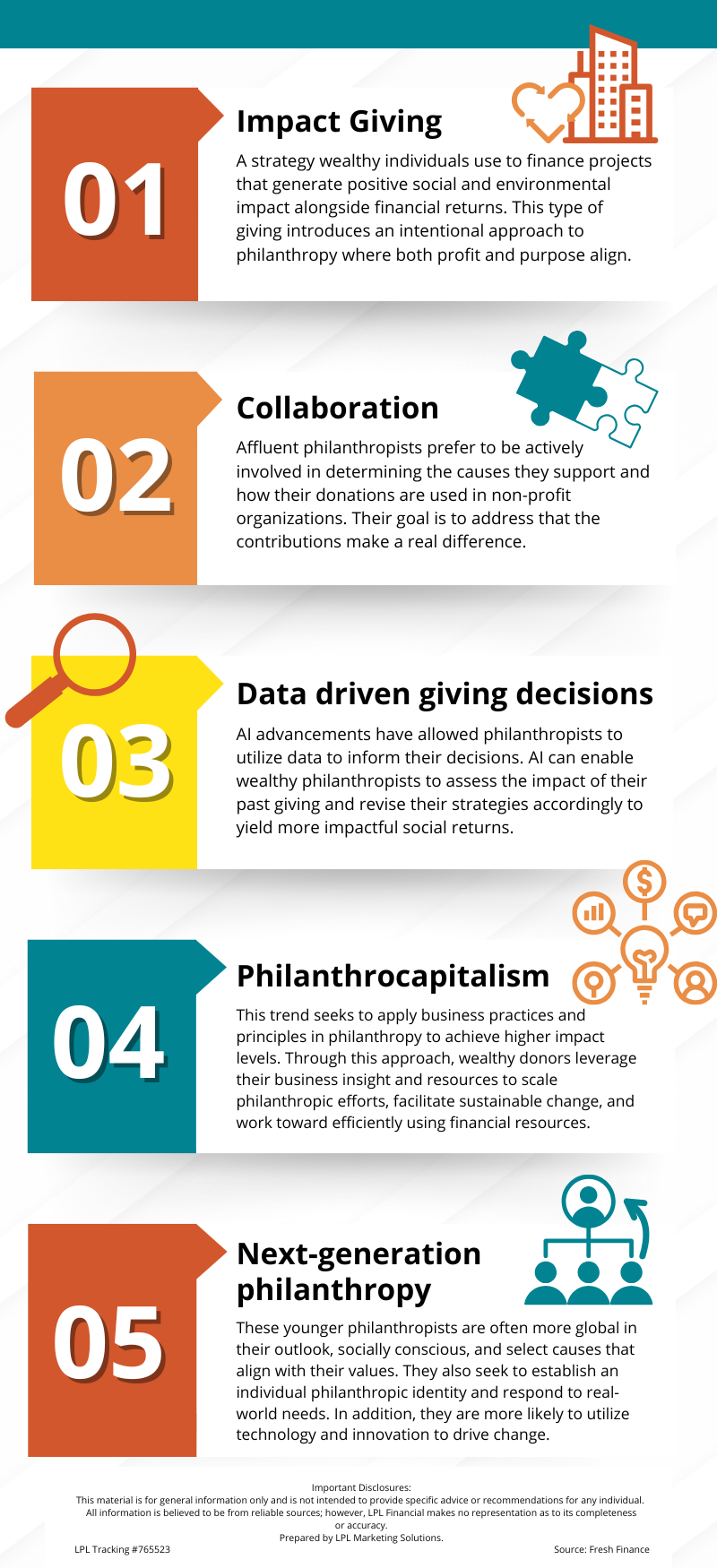 Philanthropy is evolving beyond traditional charitable giving, driven by innovation, collaboration, and data-driven strategies. Today’s philanthropists are adopting intentional approaches that combine social impact with financial returns, leveraging technology and business principles to maximize effectiveness. From impact giving and collaborative efforts to AI-powered decision-making and next-generation practices, these trends are reshaping how wealth is used to create meaningful change.